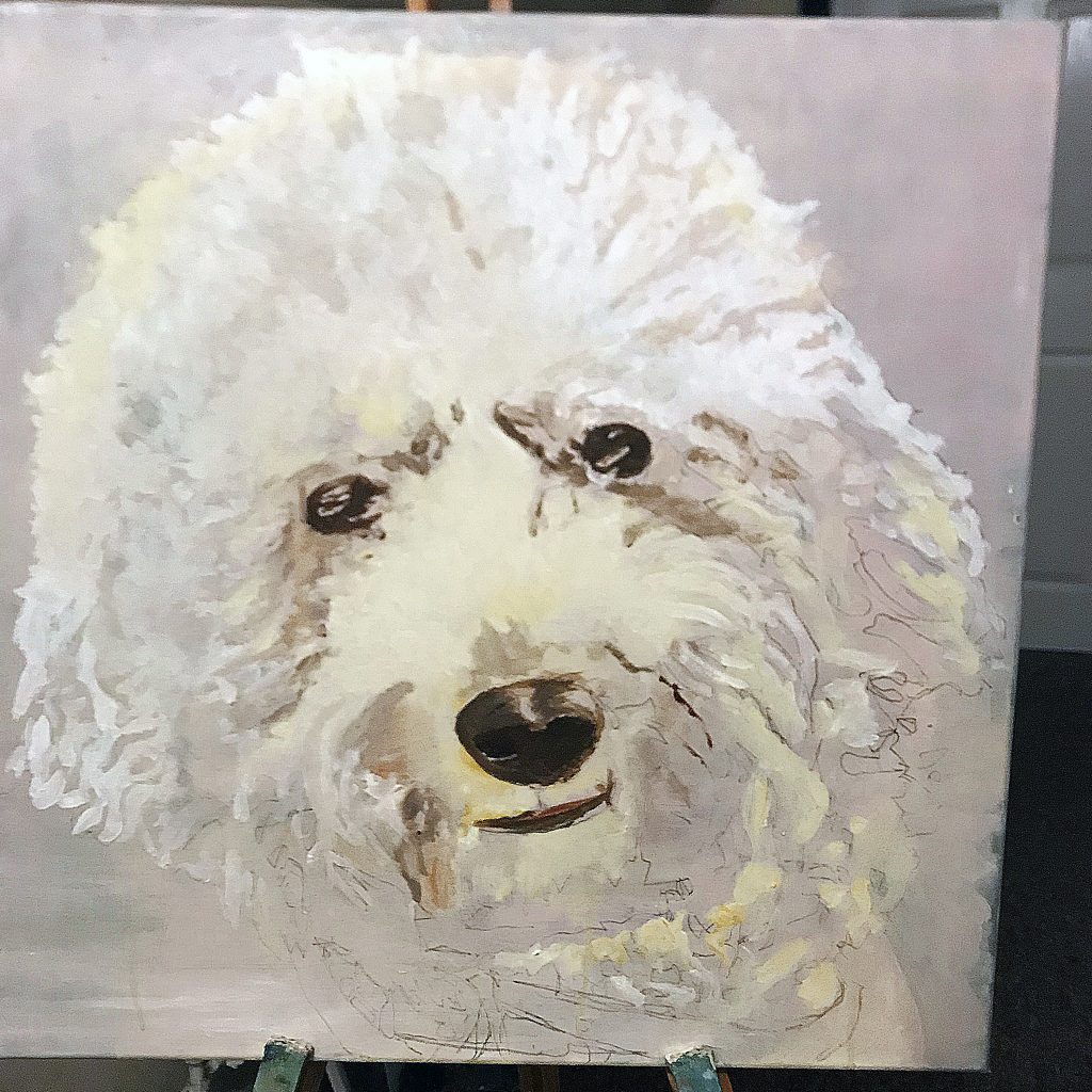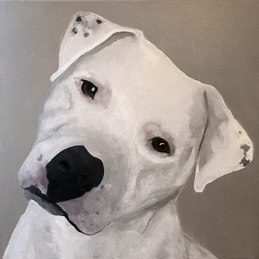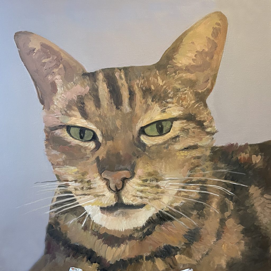 I work with oil paint on canvas and aim to capture the likeness of your pet and convey its unique personality.